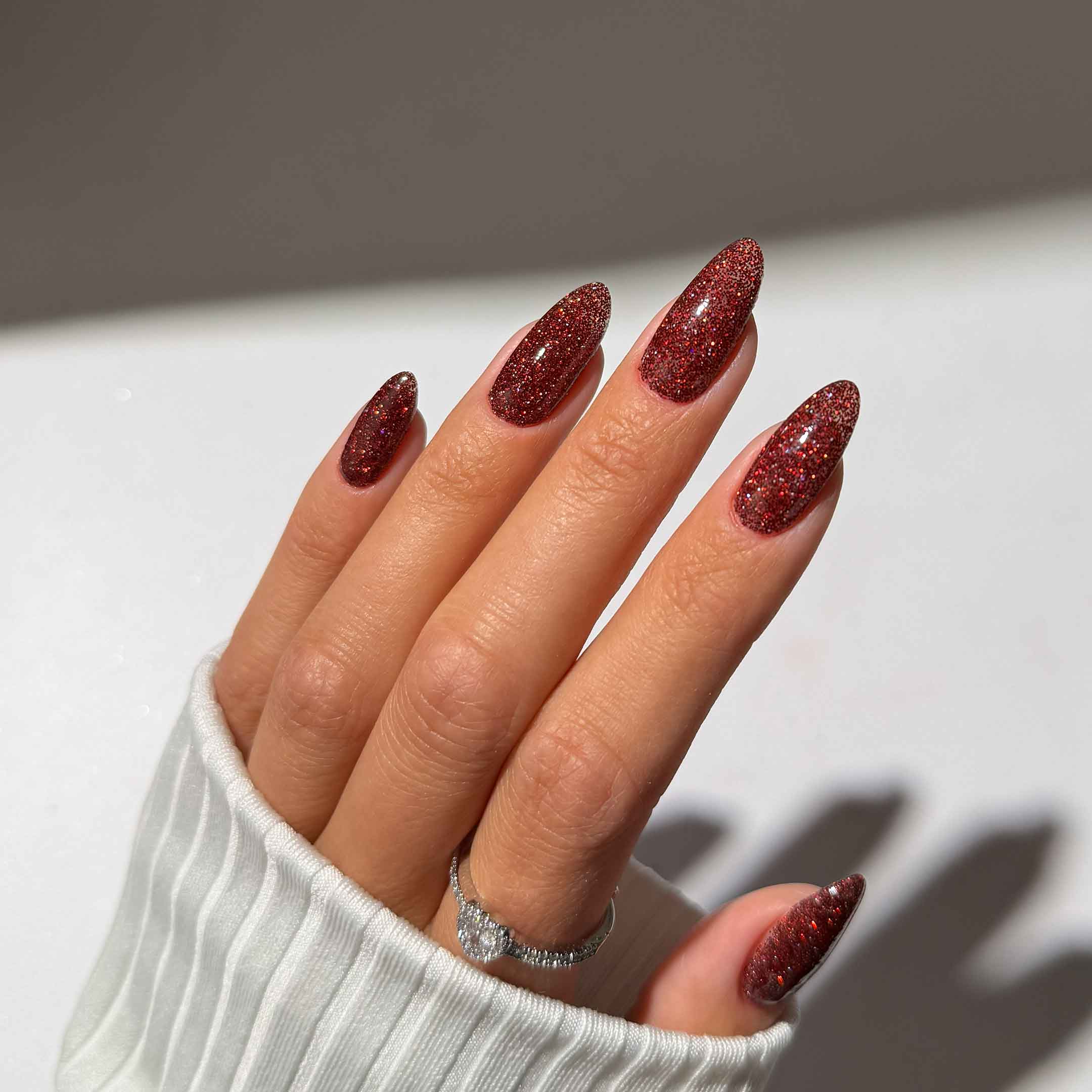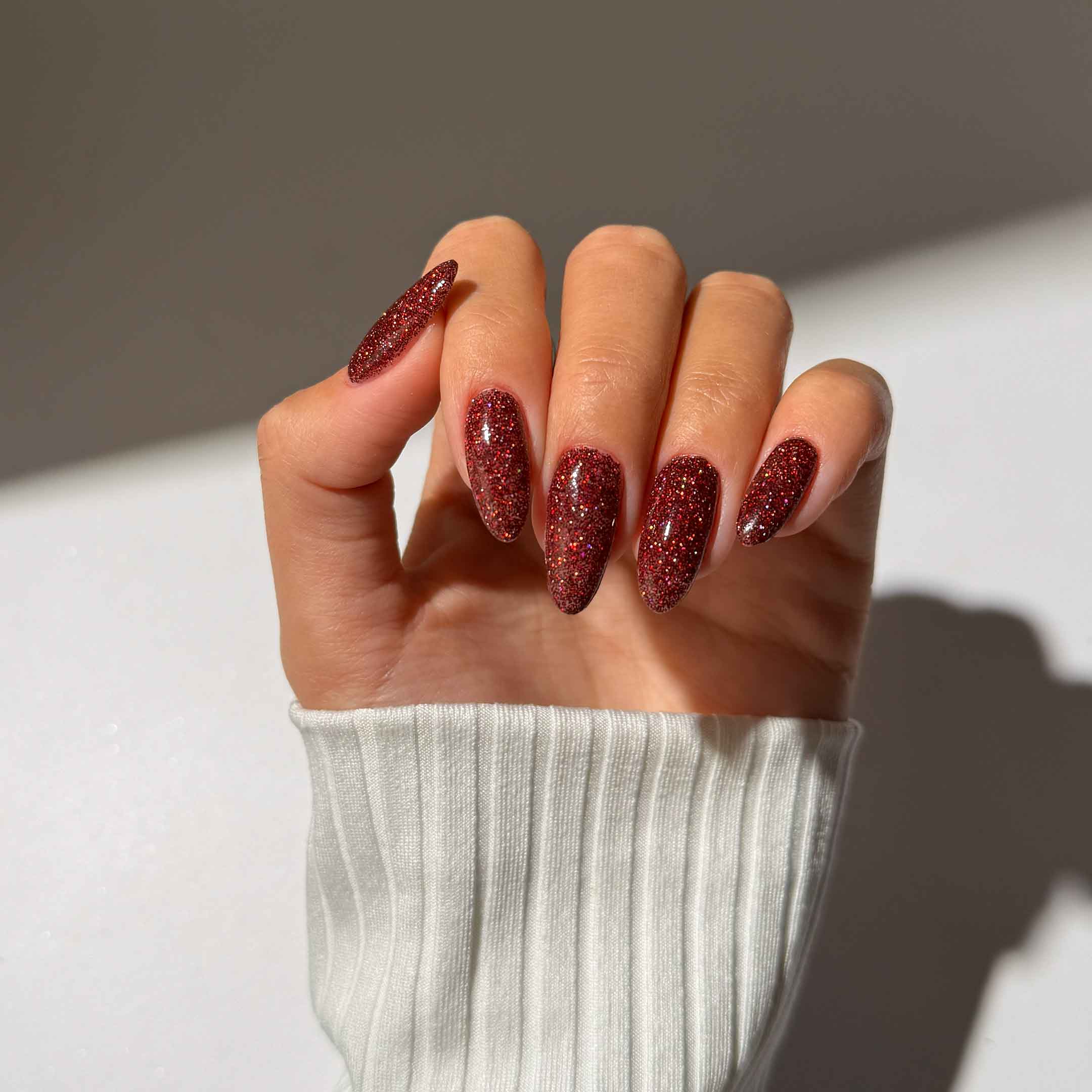 Garnet Games is a deep garnet red packed with fine, multidimensional shimmer. Dark, rich, and jewel-toned, it has a high-sparkle finish that catches the light from every angle while maintaining a refined, polished look. Bold and dramatic without feeling excessive.