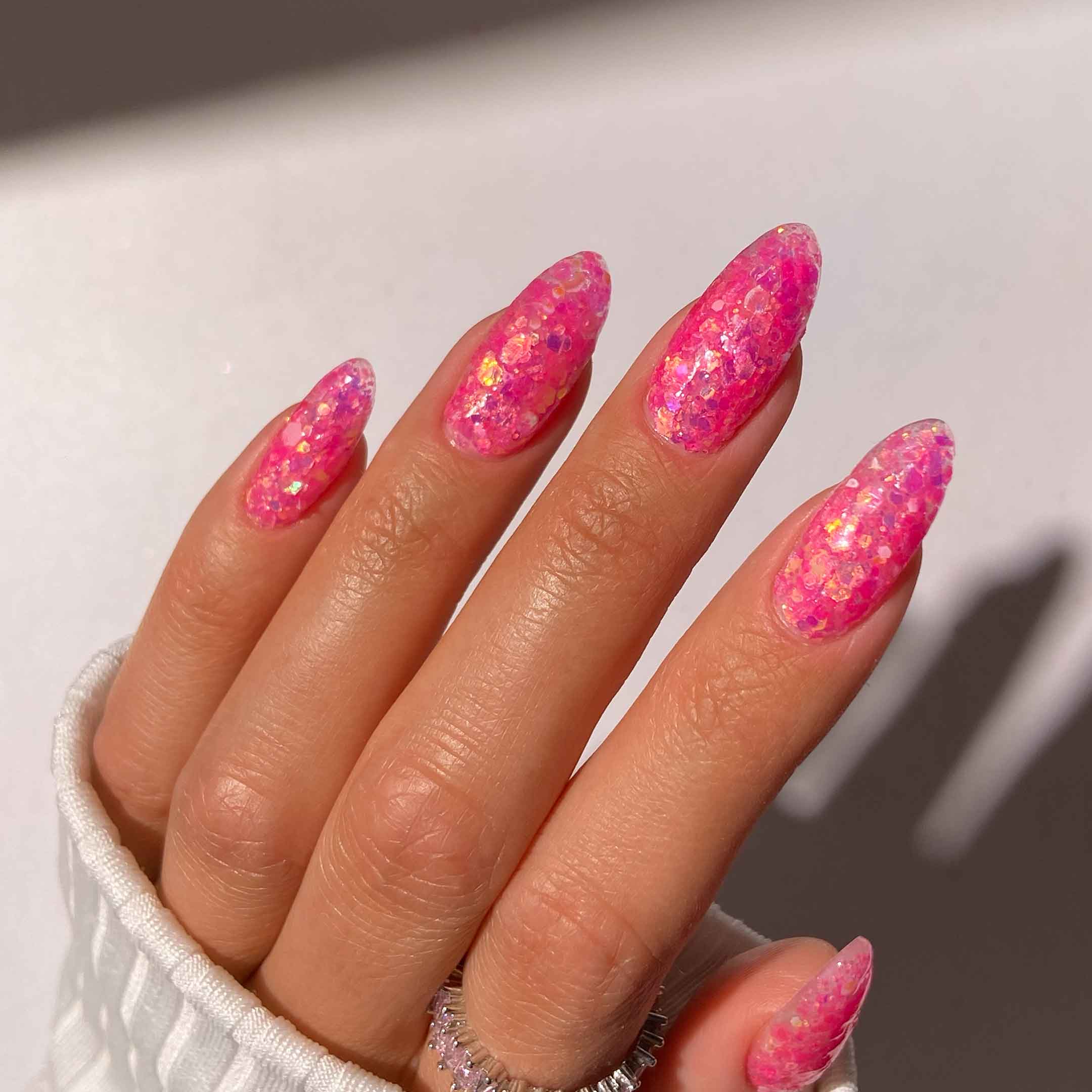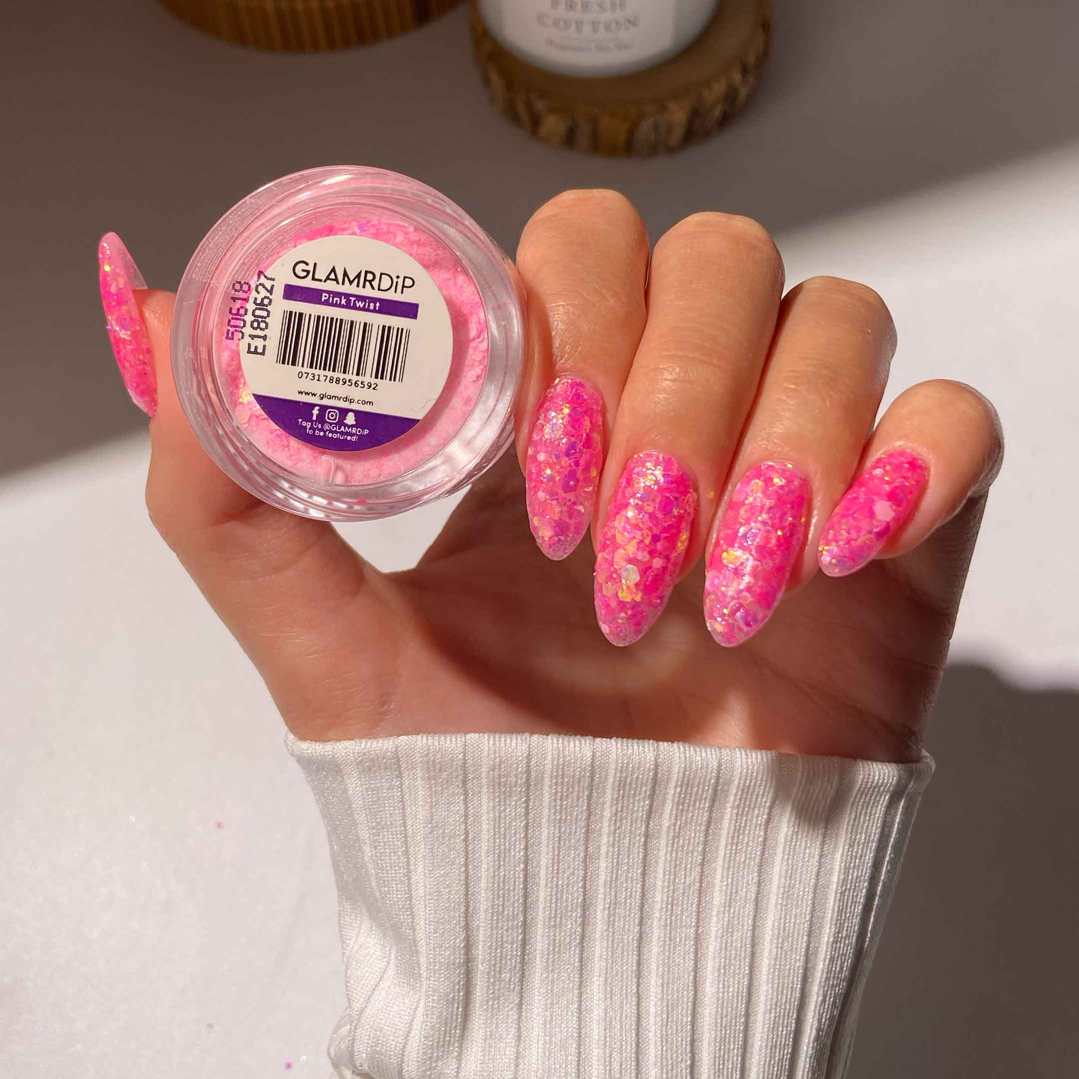 Pink Twist is a playful spin on a classic. This vibrant hot pink is loaded with chunky glitter that catches the light from every angle. It’s the ultimate candy-coloured shade to brighten up your manicure.